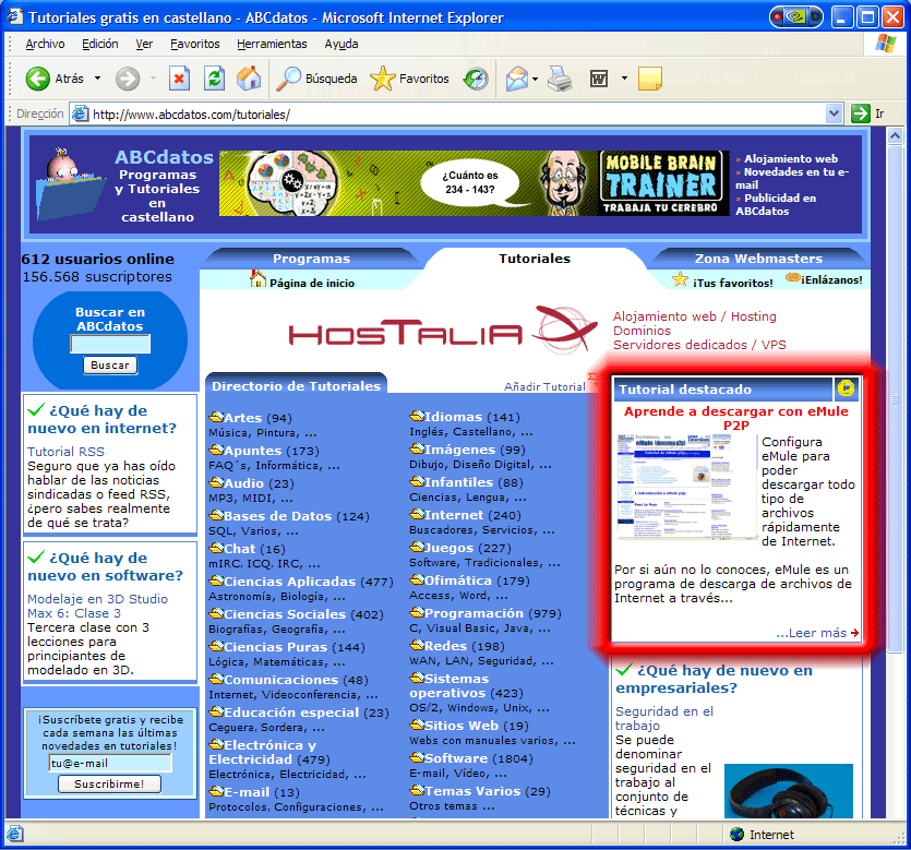 19-Jul-07: Nuestro Tutorial de eMule-p2p ha sido galardonado como el mejor de la semana en www.ABCdatos.com. |