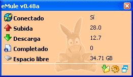 - Al apuntar al icono de eMule, aparece temporalmente