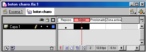 Podemos apreciar que en vez de fotogramas normales, como cualquier animación de flash, disponemos de cuatro fotogramas "especiales":
