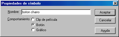Para crear un botón podemos primero dibujarlo, por ejemplo en el estado de reposo, y después convertirlo en símbolo; para ello, una vez seleccionado, elegimos el menú: "Insertar-Convertir en símbolo". Debemos escribirle un nombre, y elegir el comportamiento de Botón.