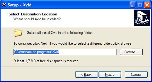 Después debes elegir la carpeta donde quieres guardarlo (por ejemplo, "Mis Documentos"). 3-Cómo Instalar el codec Xvid.Una vez descargado, haz doble clic en el icono del programa, y sigue el siguiente proceso: