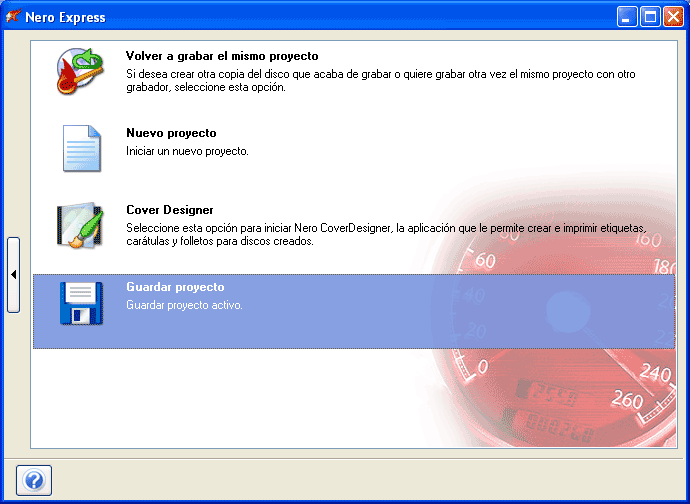 Guardar un proyecto para repetir la grabación en el futuroLa opción de guardar el proyecto no guarda los datos (la imagen del disco), sino sólo la información del nombre del disco y los archivos que se han grabado, con la estructura de carpetas creada en el disco. Así pues, nos permitirá hacer otra copia del mismo disco siempre que los archivos originales sigan estando accesibles en el mismo lugar y con el mismo nombre. En caso contrario, sólo nos servirá como un “recordatorio” de lo que hemos grabado en ese disco; revisarlo en el futuro nos permitirá evitar grabar erróneamente los mismos archivos en 2 discos diferentes.