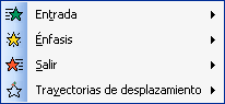 Al seleccionar un objeto y pulsar el botón “Agregar efecto”, podemos elegir el efecto de entrada, énfasis, salida, y la dirección de desplazamiento. Cada objeto puede tener uno o varios de estos efectos: