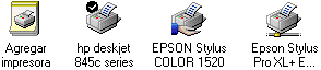 5c-Compartir una impresora en una red localAntes de compartir una impresora, debemos instalarla y comprobarla de la forma habitual en nuestro ordenador (si no lo estaba). Para ello, seguiremos las instrucciones del manual de usuario. En el menú "Inicio-Configuración-Impresoras" podemos ver las impresoras disponibles en nuestro ordenador, tanto las conectadas directamente a nuestro equipo, como las de otros ordenadores que hayamos instalado según el método descrito en el apartado anterior: