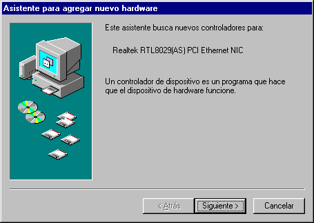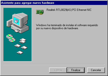 3a-Instalación de la tarjeta de red-Instalar la tarjeta de red físicamente -Si la tarjeta es PnP (Plug And Play), Windows detecta automáticamente la tarjeta y aparece: