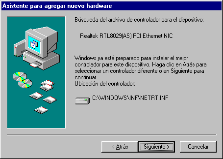 Si el nombre y modelo de la tarjeta de red que ha detectado Windows coincide con la que tenemos, pulsamos "siguiente":