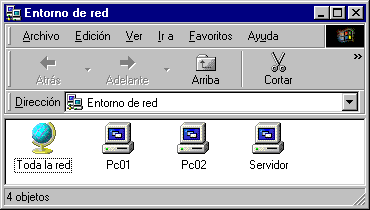 Comprobación de que funciona la red: Hacer doble clic en el entorno de red; aparecerán los ordenadores de la red que están conectados en este momento.