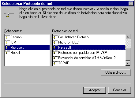 "Netbeui" está en la sección "Microsoft"; quizá te pida el cd-rom de Windows, y cuando termine el proceso, tendrás el nuevo protocolo instalado: