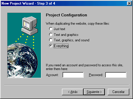 2) Teclear la URL (dirección) del sitio a descargar, y el nombre que deseamos darle.3) Elegir el tipo de archivos que deseamos descargar:Las opciones significan lo siguiente: