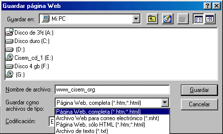 1d) ¿Por qué es necesario?Para guardar una página web determinada, basta usar la opción "Archivo-Guardar Como" del navegador. por ejemplo, en Internet Explorer 5 podemos decidir si deseamos: