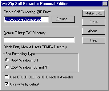 usarse en Windows 3.1 ó 3.11). Además, podemos elegir el directorio donde se ha de descomprimir por defecto (Default "Unzip To" Directory) |