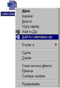tamaño es 74 Kb. Para ello, buscamos el archivo, pulsamos el botón derecho del ratón sobre él, y elegimos la opción "Add to calendario.zip". |